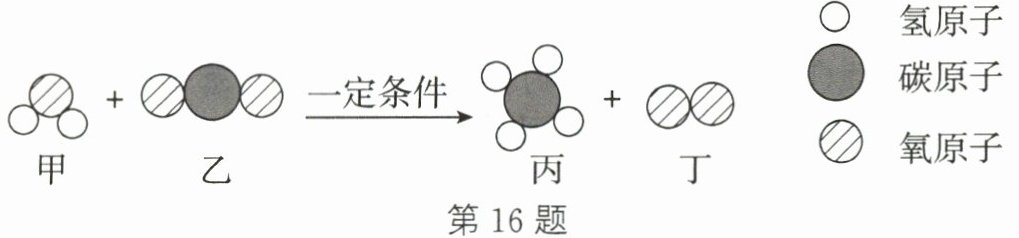 16. 科学家用“人工树叶”模拟光合作用,吸收二氧化碳并获得氧气,其反应的微观示意图如图所示。下列说法正确的是 (
