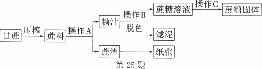 25.(4分)蔗糖是常用的调味品。工业制备蔗糖的流程如下图所示。