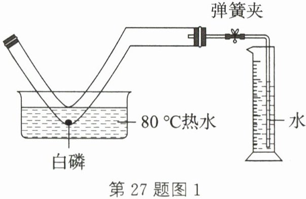 (写一点即可)。(4)已知V形管的容积为100 mL,量筒内有80 mL水,待白磷熄灭,装置冷却后打开弹簧夹,量筒中的水倒吸入V形管内,理论上可观察到量筒内液面下降至