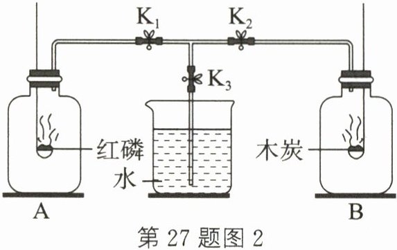 (6)实验时先关闭止水夹K₁、K₂、K₃,再将足量的红磷、木炭点燃后同时伸入大小相同的两个集气瓶中。待反应完毕,装置冷却至室温后,应进行的合理操作是