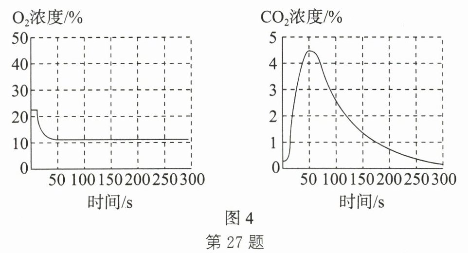 【深入探究】同学们再用图3所示装置进行实验,测得气体浓度(即气体的体积分数)变化如图4所示。