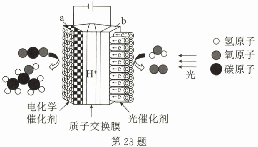23.(7分)科学家受光合作用启发,在催化剂作用下,利用阳光将水、二氧化碳转化为氧气和异丙醇($C_3H_8O$)燃料,构建了一个安全、高效的人工光合作用系统,统称“人工树叶”,装置如图所示: