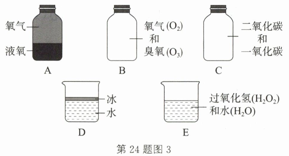 如图3所示,分别盛有不同物质的容器中,属于混合物的是