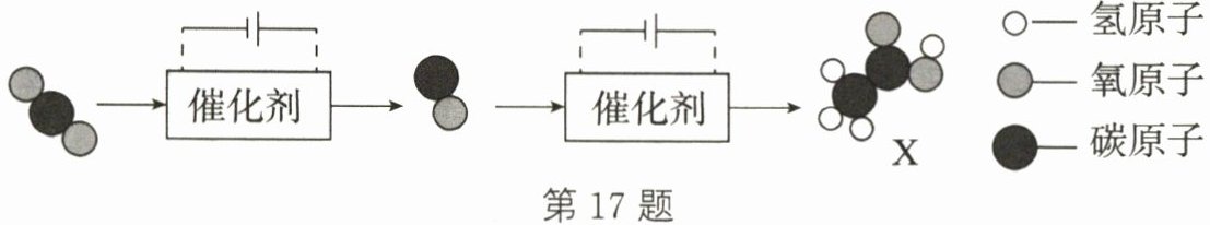 17. 我国科研人员将二氧化碳高效合成为可供微生物直接利用的物质X,合成过程中主要物质转化的微观示意图如图所示,下列说法错误的是 (