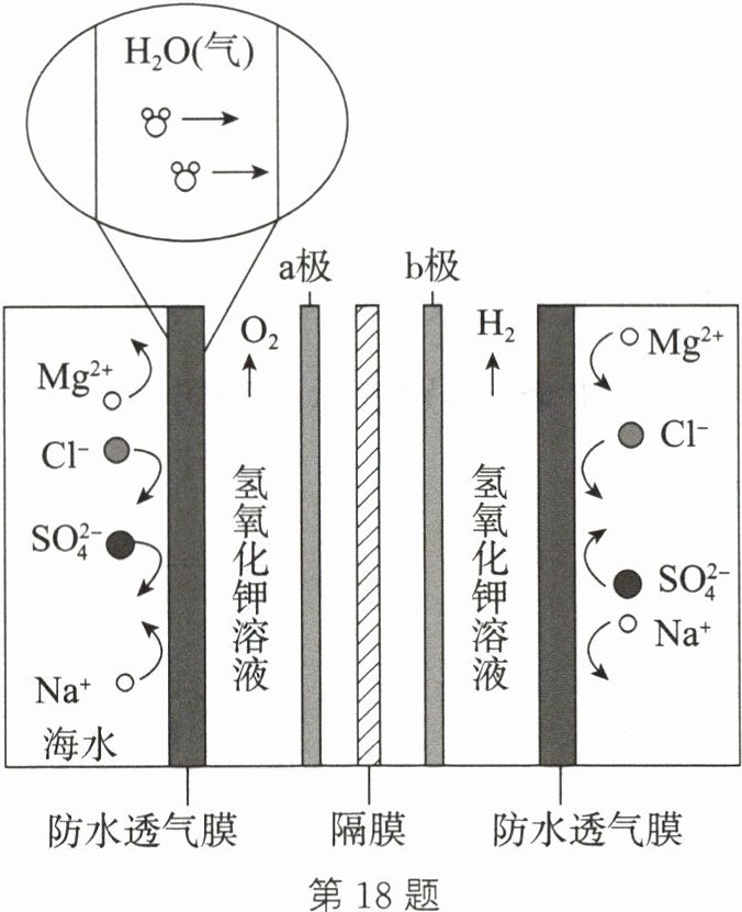 18. 我国科学家发明的无淡化海水直接电解制氢技术,利用防水透气膜将海水和电解槽隔离开,从根本上解决了海水杂质离子对设备的腐蚀问题,其工作原理如图所示。下列有关说法正确的是(
