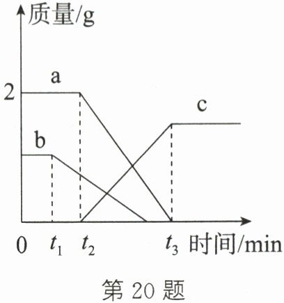 20. 将不同质量的氯酸钾和高锰酸钾固体混合加热,部分物质的质量随时间变化的关系如图所示。下列结论中,不能从图中信息得出的是(