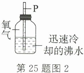 (3)向盛有氧气的集气瓶中倒入迅速冷却的沸水,立即塞紧穿有两端开口细玻璃管的橡皮塞,用注射器向玻璃管中注水至P处。装置如图2所示。