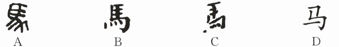【解析】:本题主要考查秦朝统一文字的相关知识。秦朝统一六国后,为巩固统一,秦始皇下令统一文字,以小篆作为全国通用的标准字体。本题需要根据秦朝官方文字的特点,从选项中选出最有可能出现在秦朝官方文书中的“马”字。