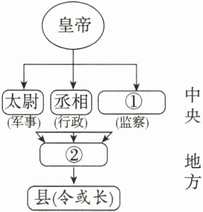 (1)请从“统一六国”“创立制度”“开拓疆土”“兴修工程”中选择一个作为材料一的题目,并将示意图①②处填写完整。(3分)