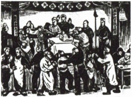38. 下图是创作于1944年的木刻版画《村选大会》。画面呈现出中国共产党在抗日根据地(