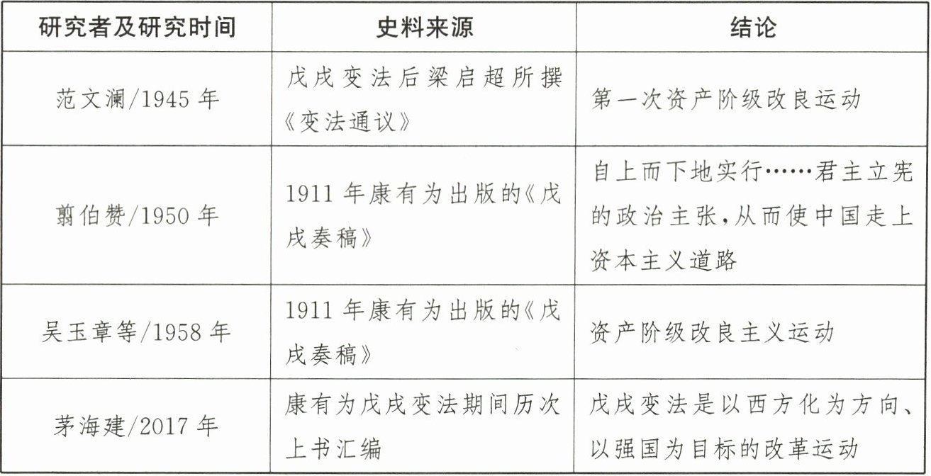 材料二:关于戊戌变法性质的相关研究简表