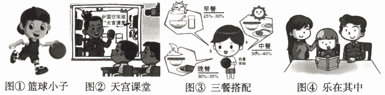 )图①篮球小子 图②天宫课堂 图③三餐搭配 图④乐在其中