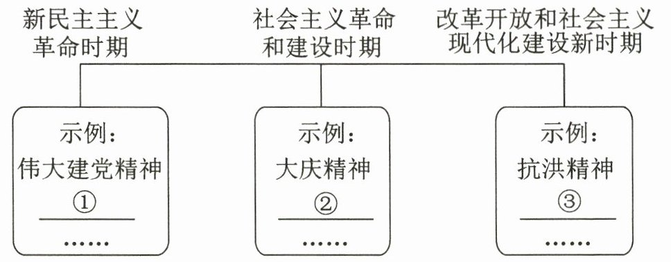 示例:伟大建党精神 示例:大庆精神 示例:抗洪精神