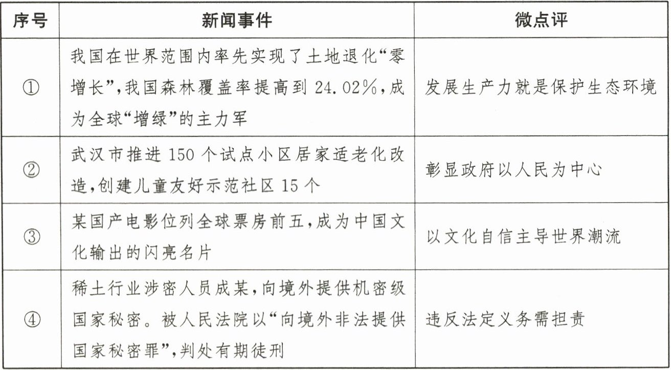 8. 某校九年级(2)班举行“时政微点评”交流活动,同学们分享了许多社会热点新闻。下列点评正确的有(