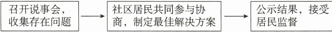 ) 召开说事会,收集存在问题→社区居民共同参与协商,制定最佳解决方案→公示结果,接受居民监督
