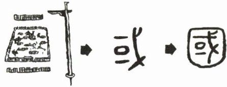 1. 国字原作“或”,字形像以“戈”守卫“口”。后来在“或”字的周围加“□”表示疆域,构成“國(国)”字。由此说明,一国的领土(