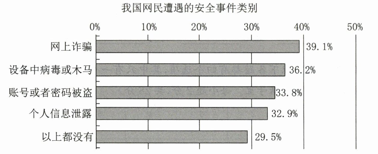 10. 下图是我国网民遭遇的安全事件类别。为了避免相关损失,你认为下列举措正确的是(