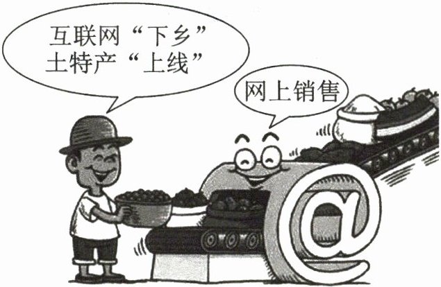 解:漫画中“互联网‘下乡’,土特产‘上线’”“网上销售”体现了网络对经济的影响。
