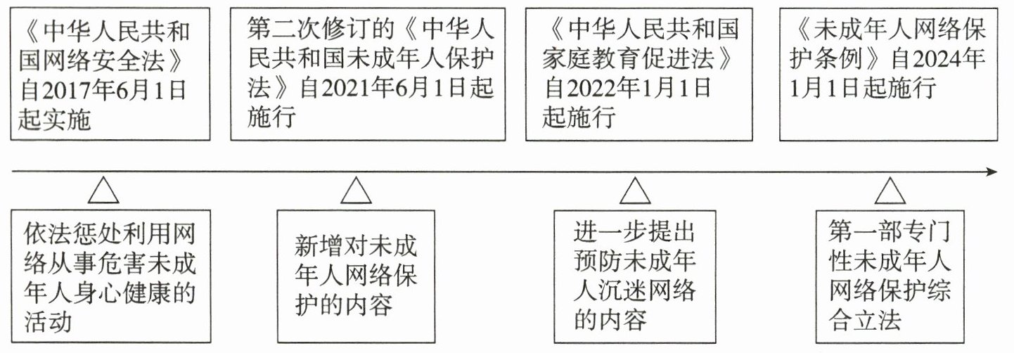 材料一 我国多次对未成年人网络保护通过立法加以制度性解决,为未成年人撑起一片网络晴空,保护他们的合法权益。