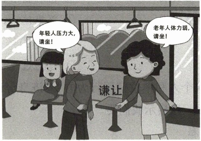 【解析】:本题可根据漫画内容,结合道德与法治学科中关于文明有礼、尊重他人、友善待人、关爱他人等相关知识进行分析。
