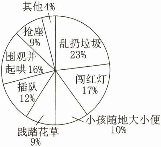 2. 近年来,某研究机构对公共场所人们的不良行为进行调查,结果显示:抢座、围观并起哄、插队和闯红灯等行为在所有不良行为中占54%。这项结果提醒人们要(