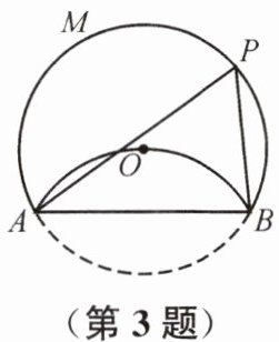 3. 如图,将$\odot O$沿弦$AB$折叠,圆弧恰好经过圆心$O$,$P$是优弧$\overset{\frown}{AMB}$上一点,则$\angle APB$的度数为(