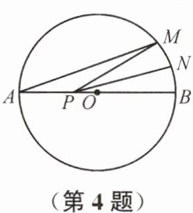 4. 如图,$AB$是$\odot O$的直径,$AB = 8$,点$M$在$\odot O$上,$\angle MAB = 20^{\circ}$,$N$是弧$MB$的中点,$P$是直径$AB$上的一动点,若$MN = 1$,则$\triangle PMN$周长的最小值为(