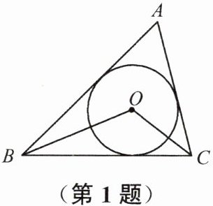 1. 如图,$\odot O$ 是$\triangle ABC$ 的内切圆,若$\angle A = 60^{\circ}$,则$\angle BOC$ 的度数为