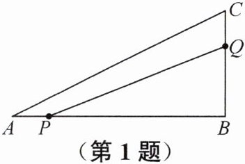 1. 如图,在 Rt△ABC 中,∠B = 90°,AB = 6 cm,BC = 3 cm,点 P 从点 A 开始沿边 AB 向点 B以 1 cm/s 的速度移动,点 Q 从点 B 开始沿边 BC 向点 C 以 2 cm/s 的速度移动. 如果点 P,Q 分别从点 A,B 同时出发,那么几秒后,P,Q 两点间的距离为 $ 4\sqrt{2} $ cm?