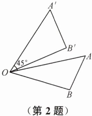2. 如图,可以看到点 $ A $ 旋转到点 $ A' $,$ OA $ 旋转到 $ OA' $,$ \angle AOB $ 旋转到 $ \angle A'OB' $,这些都是互相对应的点、线段与角。点 $ B $ 的对应点是点