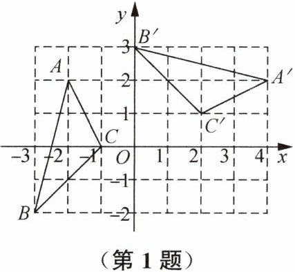 得到$ \triangle A_{2} B_{2} C_{2} .$ $ $ 1. 如图,已知在平面直角坐标系xOy中,△A'B'C'由△ABC绕点P旋转得到,则点P的坐标为