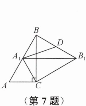 7. 如图,已知在Rt△ABC中,∠ACB=90°,∠ABC=30°,AC=2,△ABC绕点C顺时针旋转得△A₁B₁C,当A₁落在边AB上时,连接B₁B,取BB₁的中点D,连接A₁D,则A₁D的长度是(