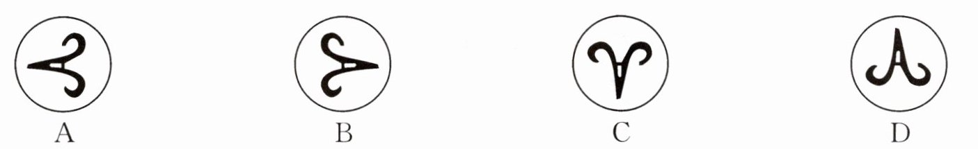 2. 将右图所示的图案以圆心为中心,旋转180°后得到的图案是( )