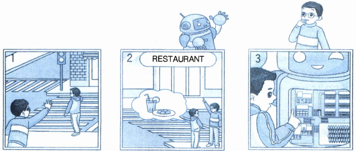 1 Stop! Don't go at a red light! 2 Let's go to the restaurant.