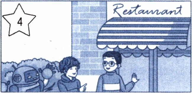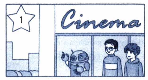 Robin: We're in front of the cinema. Let's go straight and turn left at the bookstore. Follow me, please!