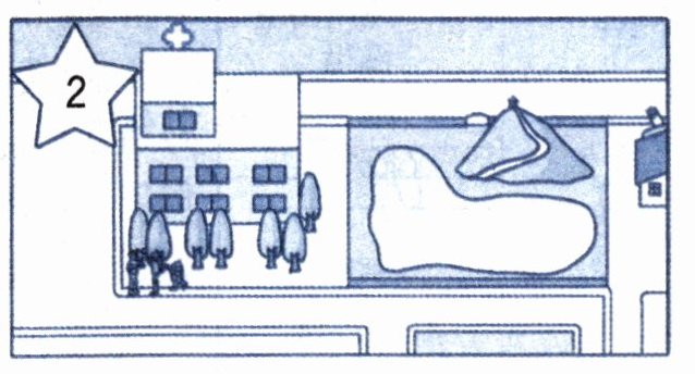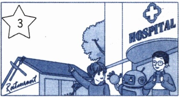 1.He can find the way. 2.Two. bookstore hospital 3.works