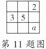 11. 数学文化 我国的《洛书》中记载着世界上最古老的一个幻方:将 1~9 这九个数字填入 $3 × 3$ 的方格内,使三行、三列、两对角线上的三个数之和都是 15. 如图,该幻方中字母 $a$ 所表示的数是(