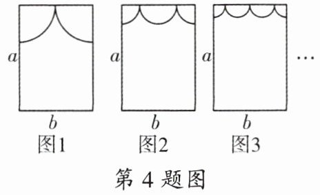 4. 第 $ 1 $ 个房间窗户的装饰物是由两个半径相同的四分之一圆组成的 ( 如图 $ 1 $ 所示 ),第 $ 2 $ 个房间窗户的装饰物是由半径相同的两个四分之一圆和一个半圆组成的 ( 如图 $ 2 $ 所示 ),第 $ 3 $ 个房间窗户的装饰物是由半径相同的两个四分之一圆和两个半圆组成的 ( 如图 $ 3 $ 所示 ). 依此类推,请用代数式表示出第 $ n $ 个房间窗户的装饰物的面积为