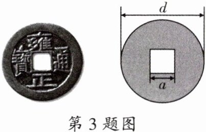 3. 铜钱是我国的早期货币,外圆内方的构造彰显了数学之美. 如图是一枚清代的“雍正通宝”,若外部的圆直径为 $ d $,内部中空的正方形边长为 $ a $,则阴影部分的面积为