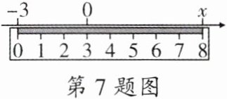 7. (2024·新乡)如图,将一刻度尺放在数轴上(数轴的单位长度是1 cm),刻度尺上“0 cm”和“8 cm”分别对应数轴上的-3和x,则x的值为