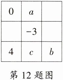 12. 数学文化 幻方的历史悠久,传说最早出现在夏禹时代的“洛书”中,把“洛书”用今天的数学符号翻译出来,就是一个三阶幻方,三阶幻方的每行、每列、每条对角线上的三个数之和都相等。如图是一个三阶幻方,则$a - b$的值为______。