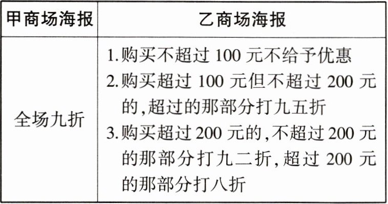 (1)甲商场实际付款200×0.9=180(元); 乙商场实际付款100+(200-100)×0.95=195(元).
