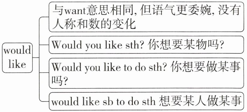 1.to walk 2.would like a new schoolbag 3.to watch 4.you to help