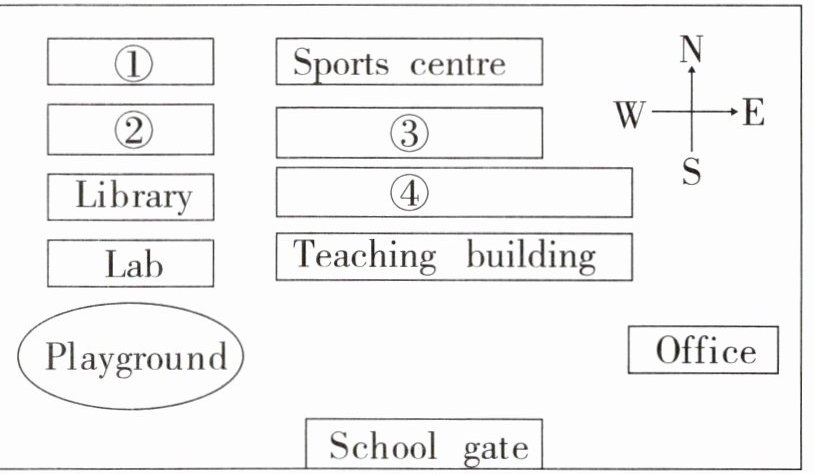 )13. What direction(方向) is the playground from the sports centre?A. Southwest.