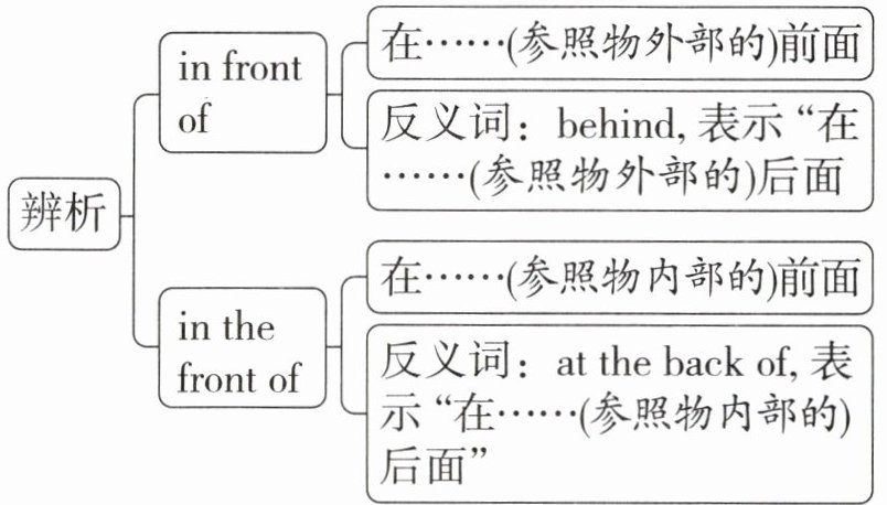 训练 4 in front of 与 in the front of 的辨析