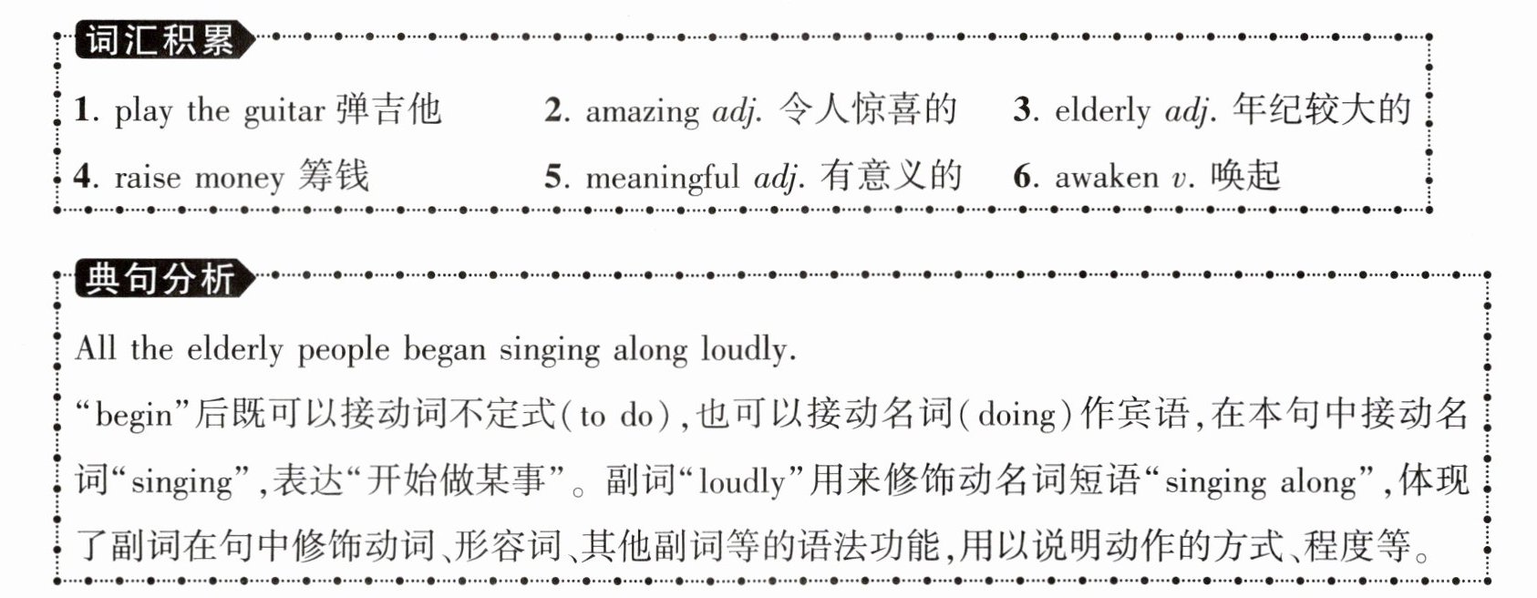 One day,her group performed old songs at a nursing home( 养老院). When the music started,