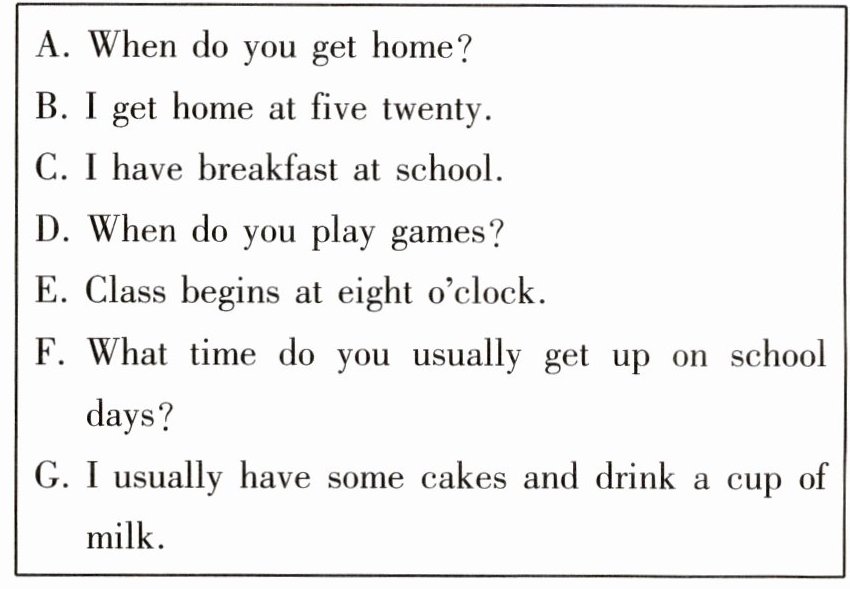 B: Well. I live next to my school, so I get up at six forty-five.