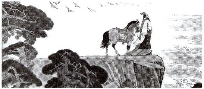 5.可以。(1分)画作中波涛翻涌、一望无际的景象与诗句“水何澹澹”“洪波涌起”相吻合;画作中主人公勒马远眺的神情、气度与本诗作者曹操当时作诗的背景颇为吻合;画作所呈现的开阔意境与诗歌也很相符。(3分,能结合诗句简析,意近即可)