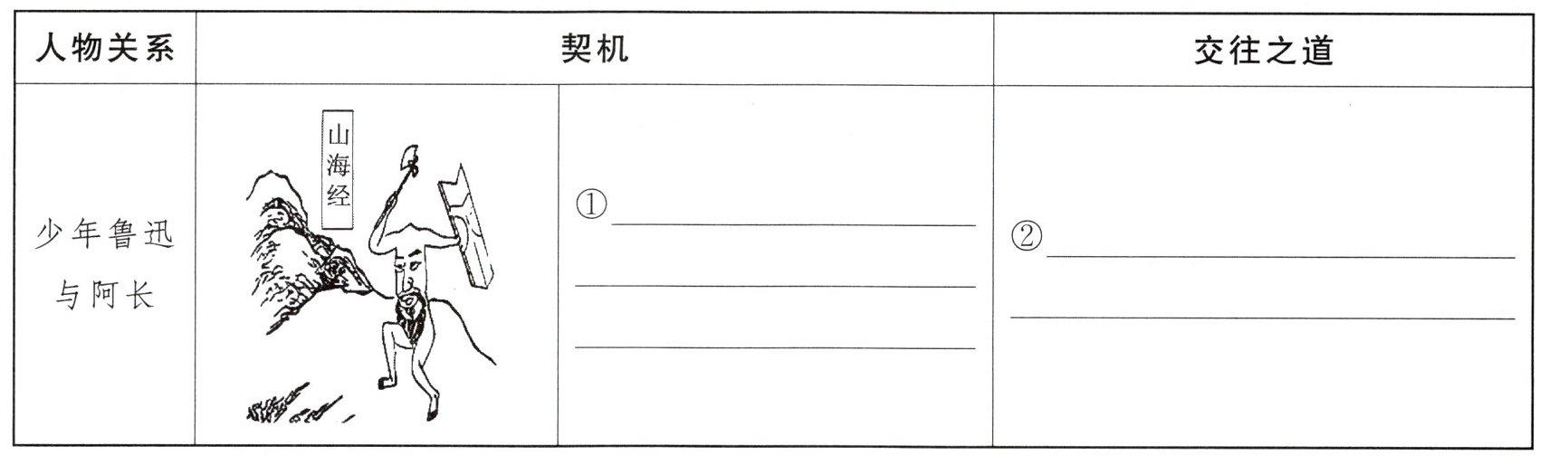 1.①阿长为少年鲁迅买来他心心念念的绘图的《山海经》 ②【示例】交往需要真心,只有付出真心才能建立深厚情感
