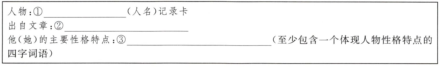 4. 读了《朝花夕拾》这部作品,班委会拟以“鲁迅笔下的那些人物”为专题开展读书沙龙活动。请你结合阅读,为书中印象最深的一个人物填写记录卡。